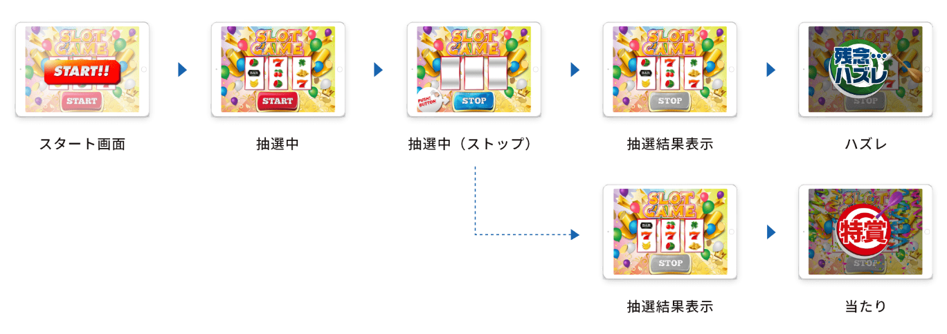 04. 管理画面からの抽選設定可能! 抽選確率は、キャンペーン期間中いつでも管理画面から自由に設定できるので、 最初に当たりが偏ってしまう、賞品が余ってしまうといった事態を避け、最初から最後まで安定して運用を続けることが可能です。 |
