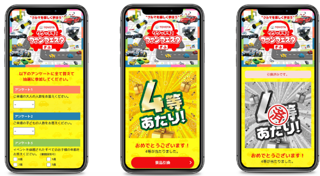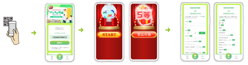 スマートフォンやタブレットなどを利用して、WEB上で「あたり」や「はずれ」がすぐに分かる即時抽選に参加することができます。